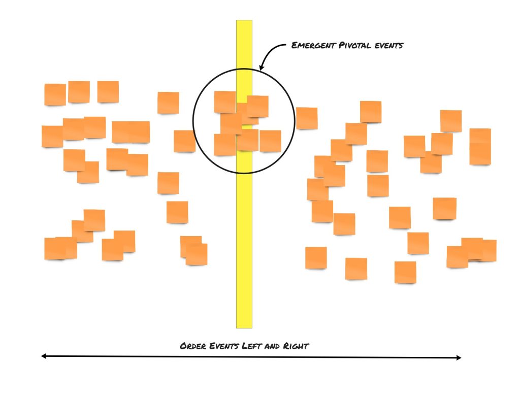 We can use the emerging pivotal events that we can take a group of events and start enforcing the timeline from there. Using the emerging pivotal events, we don't lock ourself to a more definitive decision, which eases some people but can unblock, move on and start sorting the domain events on the timeline, enforcing the timeline.